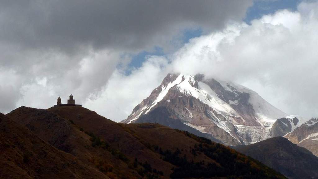 Казбек, откуда открывается незабываемый вид. Однако можно подниматься и зимой, мы организовываем такие туры, просто в этот период повышаются требования к умениям, физической форме альпинистов, обязателен . Это прекрасный вариант экономного тура по грузии. На ее склоне находится троицкая церковь в гергети на высоте 2 000 м.