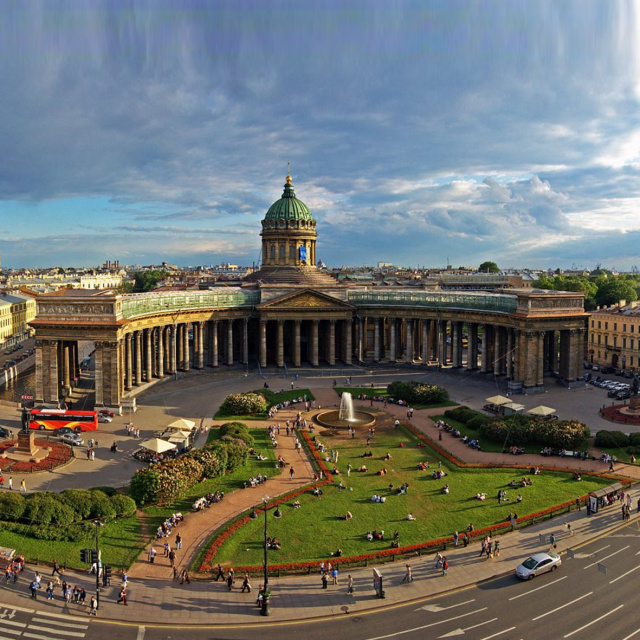 Экскурсии с посещением казанского собора. Смотрите виртуальную экскурсию на полном экране для полного . Для управления зажмите левую клавишу мыши и поворачивайтесь в любую сторону. Обсудим памятники полководцам на площади и необычный широкий мост рядом с ней.