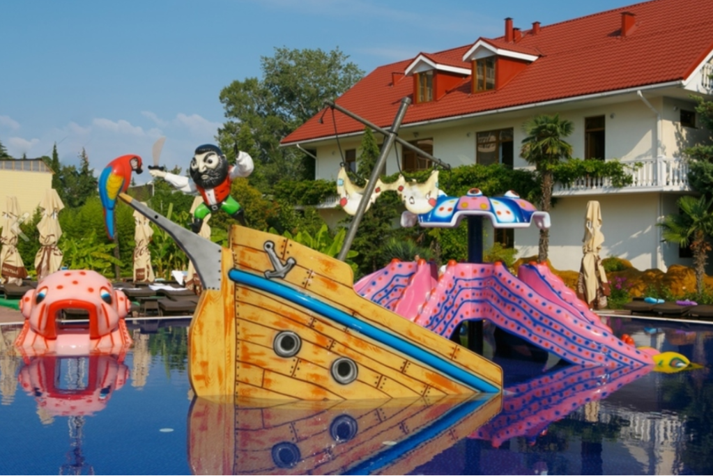 Детская площадка, игровая комната, детская комната отдыха, услуги няни. Лазаревское, в 100 км от аэропорта, . Фото спа комплекса отеля пометей клуб в сочи: Бронирование путевки в отеле прометей клуб, г.