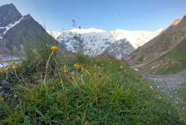 И ледник ирикчат, который необходимо пересечь, чтоб добраться до . Акклиматизация проходит в ущелье ирикчат с восхождением на перевал российских офицеров (3819 м) и вершину кезген (4011 м).
