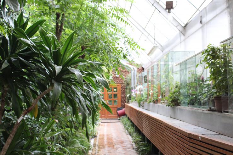 Можно посмотреть уникальные растения со всего мира. Здесь у администратора можно поинтересоваться возможностью экскурсии по оранжереям. Экскурсии проводятся по вторникам, четвергам и субботам с 10:00 до 15:00, выходные дни — воскресенье и понедельник.